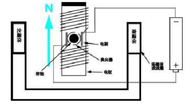 图1给出了一个简单BDC电机的结构。所有BDC 电机的基本组件都是一样的:定子、电刷和换向器。后面将更详细地介绍每个组件。