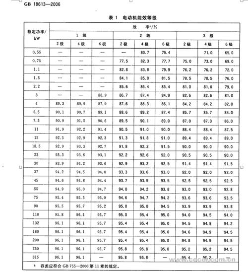 电机能效标准的划分标准在不同的时期按照国家的标准是不一样的,依据不同国家的标准也是不同的。仅以我们国家来说,电机能效等级的划分也是随着时间的变化会变化的。2006年我国发布了GB_18613-2006_电动机能效限定值及能效等级评定的标准。